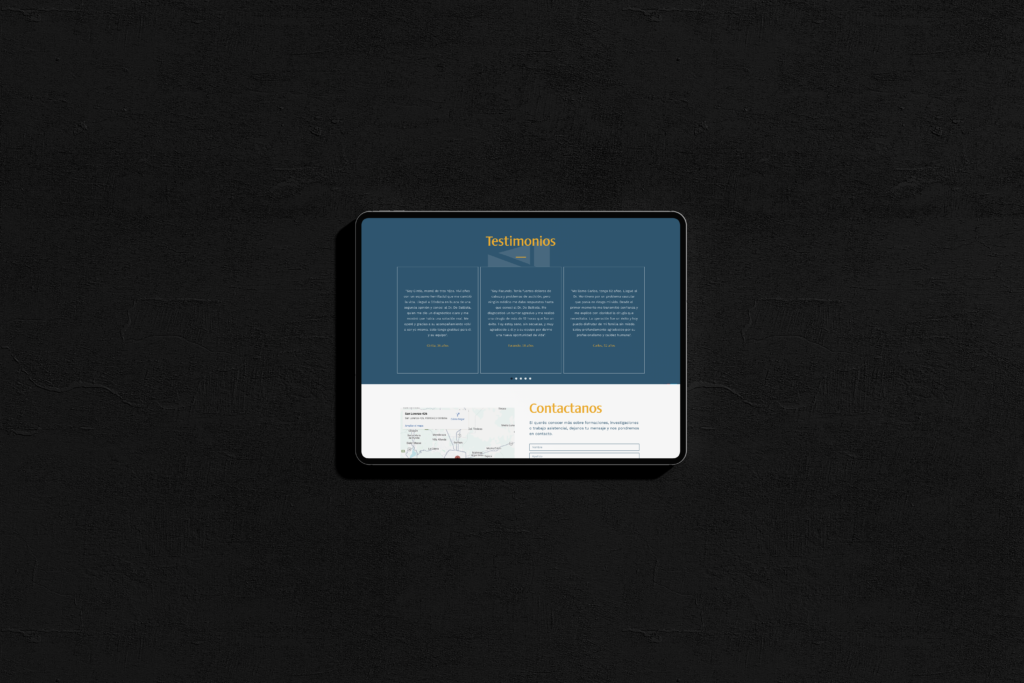 Desarrollo de sitio web personalizado por secciones. Se trabajó en motion, la optimización de imágenes, velocidad de carga y diseño responsive para asegurar una experiencia fluida en todos los dispositivos. Integración de formularios, plugins esenciales, etc.